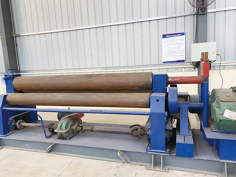 簡析卷板機(jī)的工作原理及應(yīng)用范圍卷板機(jī)是對板料進(jìn)行連續(xù)點(diǎn)彎曲的塑形機(jī)床,具有卷制O 同的形狀卷板機(jī)規(guī)格平整的塑性金屬板通過卷板機(jī)的三根工作輥(二根下輥、一根上輥) 之間,借助上輥的下壓及下輥的旋轉(zhuǎn)運(yùn)動(dòng),使金屬板經(jīng)過多道次連續(xù)彎曲(內(nèi)層 壓縮變形,中層不變,外層拉伸變形),產(chǎn)生塑性變形,卷制成所需要 的圓筒、錐筒或它們的一部分。 卷板機(jī)的工作原理是卷板機(jī)上輥在兩下輥中央對稱位置通過液壓缸內(nèi)的液壓油作用于活塞作垂直升降運(yùn)動(dòng),通過主減速機(jī)的末級齒輪帶動(dòng)兩下輥齒輪嚙合作旋轉(zhuǎn) 運(yùn)動(dòng),為卷制板材提供扭矩。借助上輥的下壓及下輥的旋轉(zhuǎn)運(yùn)動(dòng),使金屬板經(jīng)過 多道次連續(xù)彎曲,產(chǎn)生塑性變形,卷制成所需要的園筒、錐筒或它們的一部分。